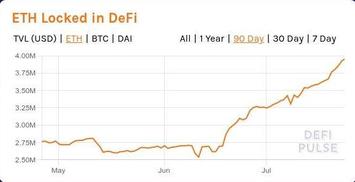 Далее рассмотрим хронологию перехода DeFi от зимнего хайпа к летнему. Хронология этого перехода представлена в виде серии слайд-шоу, отображающих динамику общей суммы заблокированных в DeFi средств, исчисляемых в USD, ETH и DAI (источник - сервис DefiPulse). DAI - это те самые фантики-"стейблкоины" DeFi-флагмана первой половины 2020 года MakerDAO, которые тот раздавал в обмен на "залог" криптовалюты, главным образом - на "залог" eth.